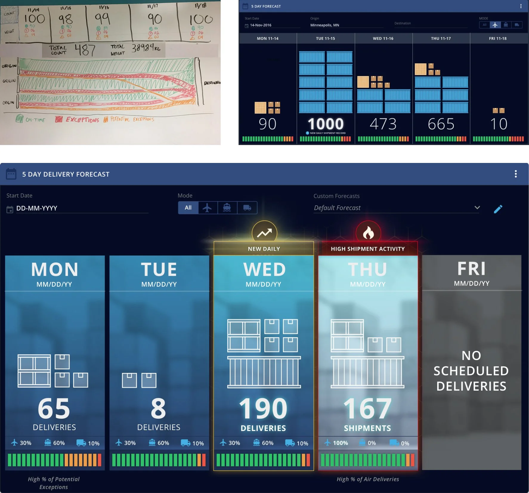 The 5-day delivery forecast came from the desire for shippers ability to get a day by day breakdown of what was being delivered. This data can help roles like warehouse managers to better allocate staff and equipment to account for changes in volume.